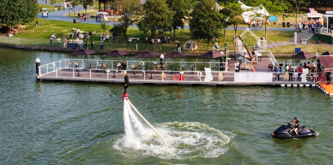 乘坐皮划艇、电动桨板等穿梭碧波。