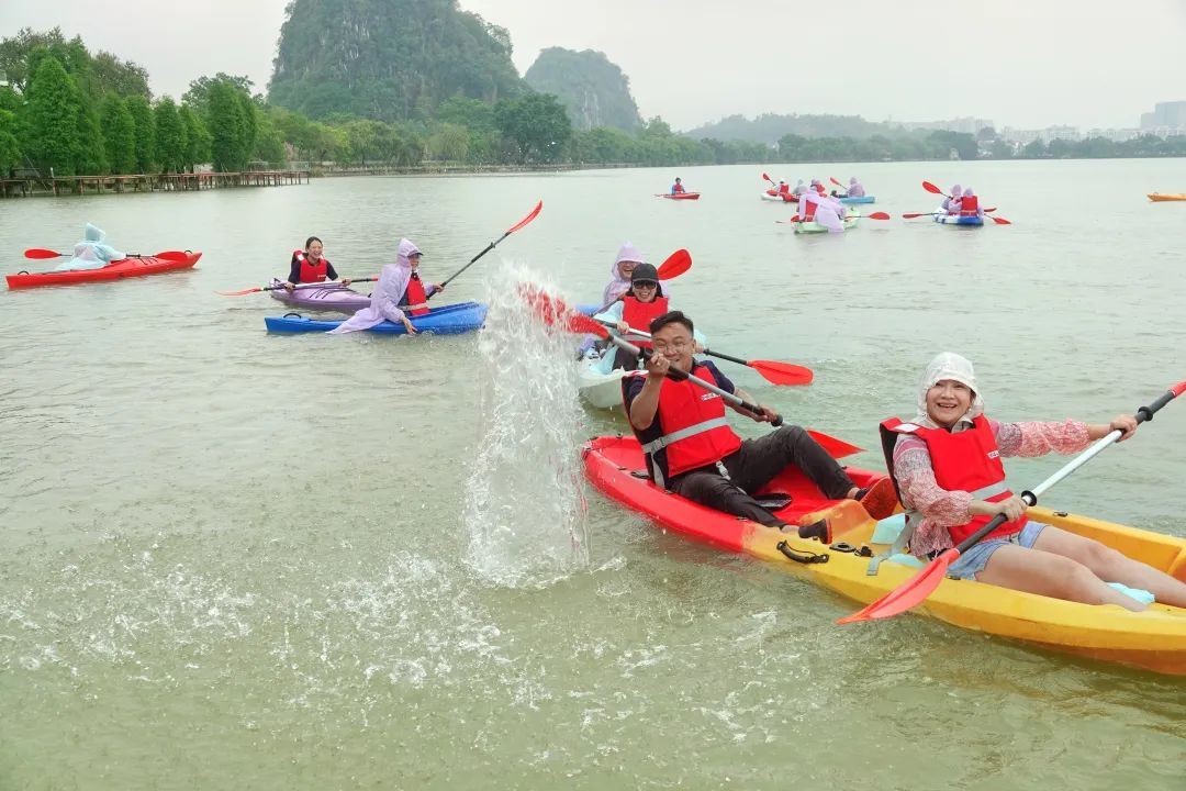 △游客在星湖体验皮划艇项目。梁学俭 摄